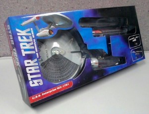 Ever look at the iconic silhouette of the U.S.S. Enterprise and wonder what’s inside? Wonder no more with the latest Enterprise ship from Diamond Select! Created by the team behind Dragon Models’ Project Cutaway line, this plastic, fully painted model of the original U.S.S. Enterprise features transparent pieces that reveal the detailed machinery and living quarters within. Ship measures 18 inches long and comes with a metal display base. Suggested price is $174.99.
