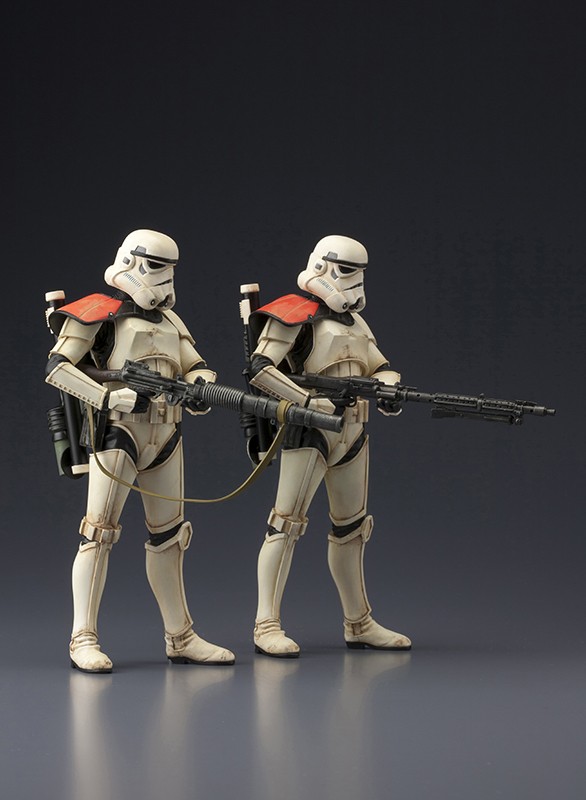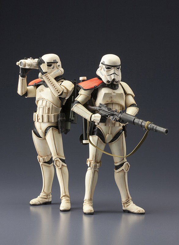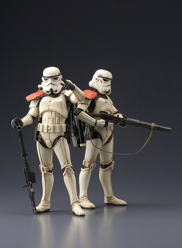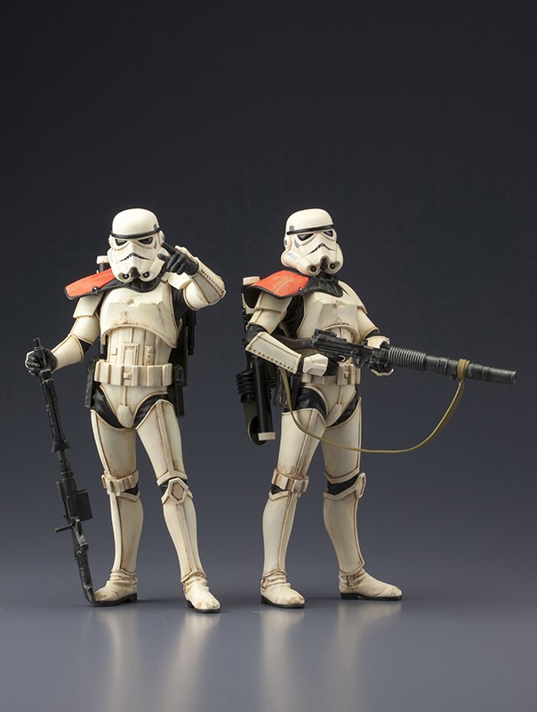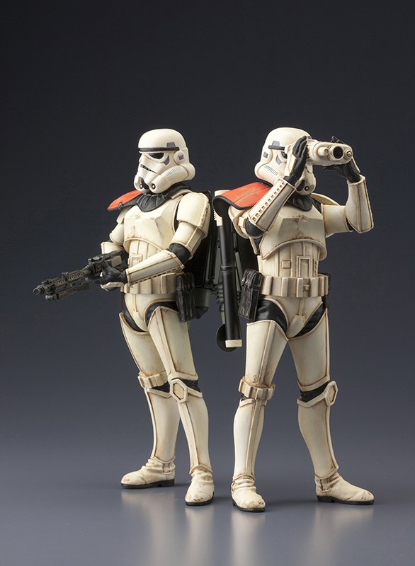 And let’s not forget Star Wars! For those of us into army building, Kotobukiya is releasing Stormtrooper two packs, both “sand” and “regular” Stormtroopers. Unfortunately for me, my pics didn’t turn out so well. But, Kotobukiya was kind enough to provide us with promotional images. The figures come with additional parts so you can set them up in 3 alternate poses.