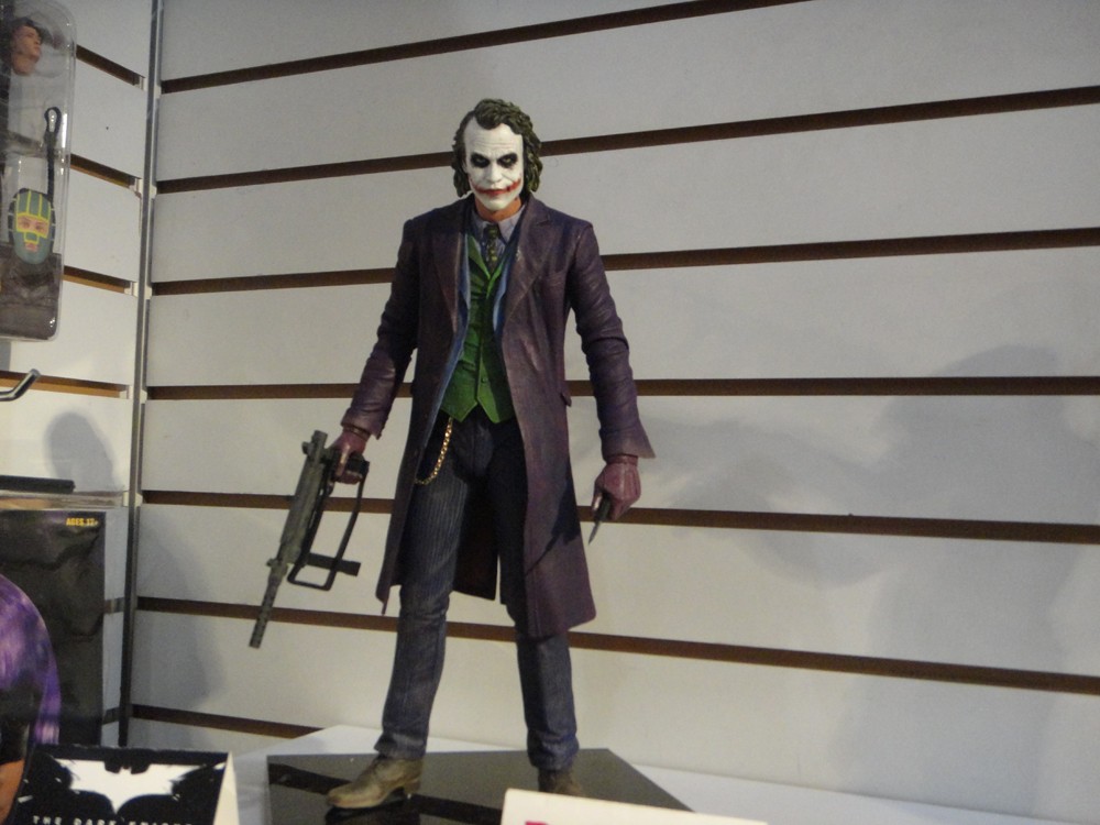 NECA had on display an 18 inch Arkham Origins Batman, which, when I say was pretty flippin awesome…I mean it was. They also were showing a 12 inch Heath Ledger Joker from the Dark Knight. From what I understand, Ledger Joker isn’t stopping at 12 inches. Nope. He’s heading up to quarter scale, just like Arkham Origins Batman.