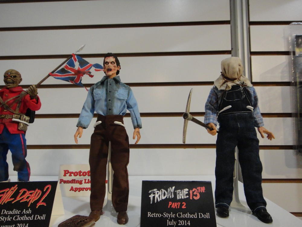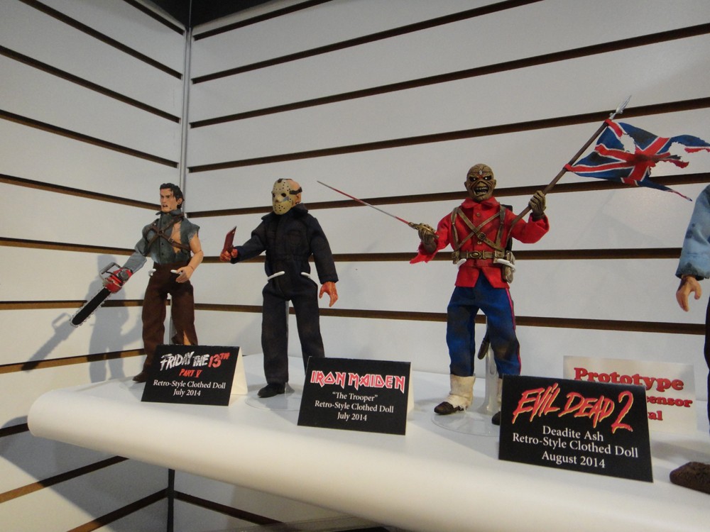There’s a cool assortment of new retro-styled clothed horror “dolls”. Two versions of Jason from Friday the 13th Part 2 and Part 5. Iron Maiden’s Eddie, and two version’s of Ash (battle damaged and zombified).