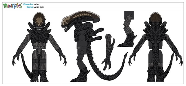 Last, but not least, The second series of Toys”R”Us-exclusive Aliens Minimates recently shipped to stores, with new versions of Ripley, Drake and Apone, but we’re already putting the finishing touches on Series 3! Tying in to the Alien (1979)-centric Series 3 coming to comic shops and specialty stores, this series incudes Kane in his space suit with eggs and a translucent “phantom” Xenomorph from Alien, Lt. Gorman in his dress uniform with an attacking Alien Warrior from Aliens, and a two-pack of red and black Hiveworld Aliens, as seen in the classic Aliens: Genocide comic book mini-series!
