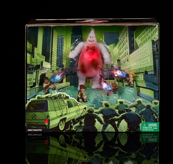 Ghostbusters is back with an all new, paranormal team and spooky cool ghosts. Now with the GHOSTBUSTERS™ Lights & Sounds Multi-Pack, you can join the fight. Battle alongside four 1.5” ghost busters mini figures who are armed and ready! Proton beams fire from their blasters as they try to take down the evil 6” Rowan figure, the giant ghost from the film. Press the button outside the box to launch a light and sound show of blue glowing proton beams as Rowan turns red and screams in rage! Press it again, and you’ll hear the iconic “Who you gonna call” Ghostbusters™ theme song as the lights bounce to the beat of the music. Packaging features slime graphics and the iconic Ghostbusters™ logo. Set also includes 3 AA batteries. It’s a multi-sensory interactive experience that real Ghostbusters fans and collectors will love!