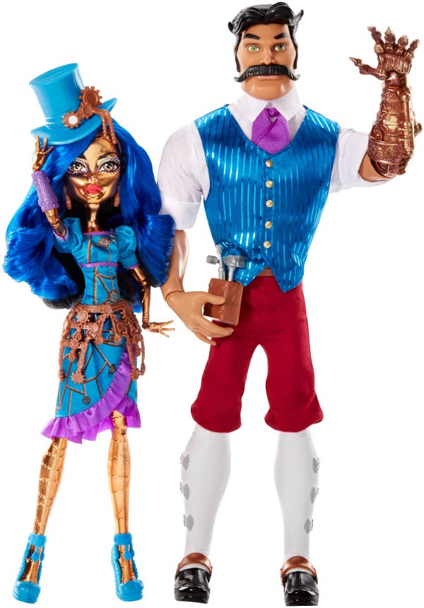 Get ready for this riveting steampunk two-pack from Monster High® ! Robecca Steam™ and her father Hexiciah Steam™ bring their analog style to the digital age in with their uhhh-mazingly detailed steampunk fashions and scary cool accessories.