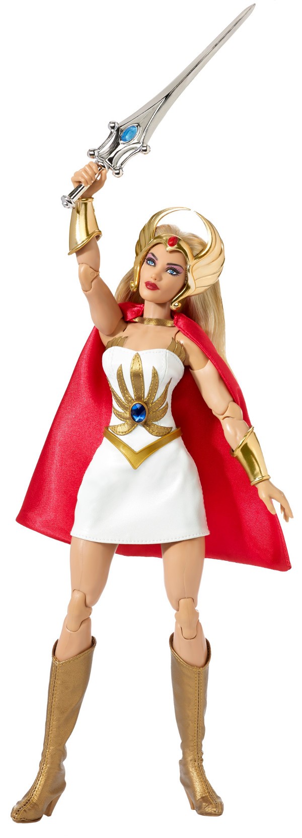 Relive the glamorous, commanding adventures of She-Ra®, Princess of Power® with this 11” highly detailed action figure. The Most Powerful Woman in the Universe® features 24 points of articulation, rooted hair, 3 iconic fashions, 2 swords, signature shield, 6 interchangeable hands, a logoed stand, a 12-page mini comic: “The Story of She-Ra”, and a beautiful keepsake box with vivid imagery from the enchanting world of Eternia®! Wage epic battle with She-Ra® against The Evil Horde® for the honor of Grayskull™!