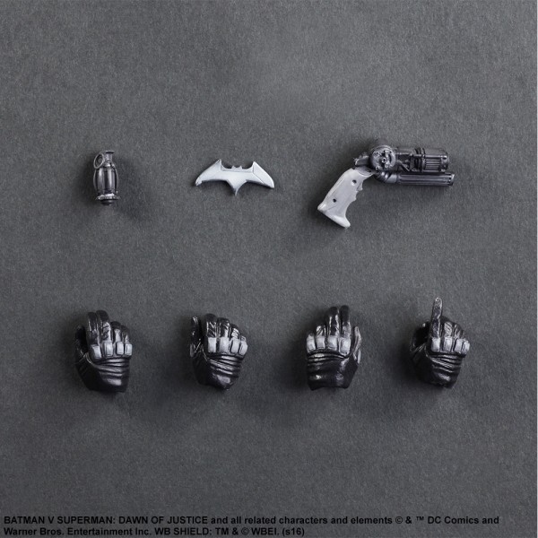 This San Diego Comic-Con 2016 Exclusive is rendered in grayscale, a long-requested paint variant from fans of the PLAY ARTS KAI line. The black and white coloring evokes Batman’s film noir roots, while highlighting the modernity of his dynamic design in Batman v Superman: Dawn of Justice.