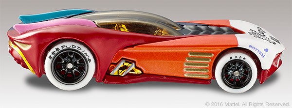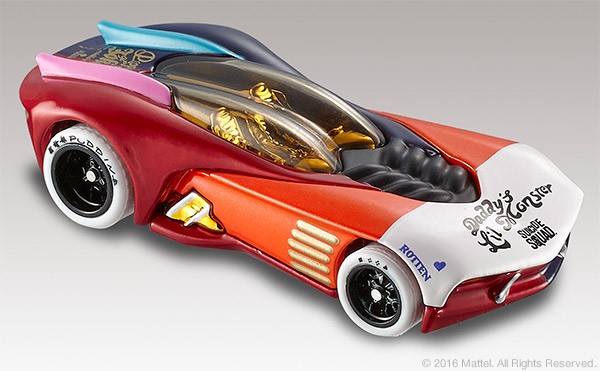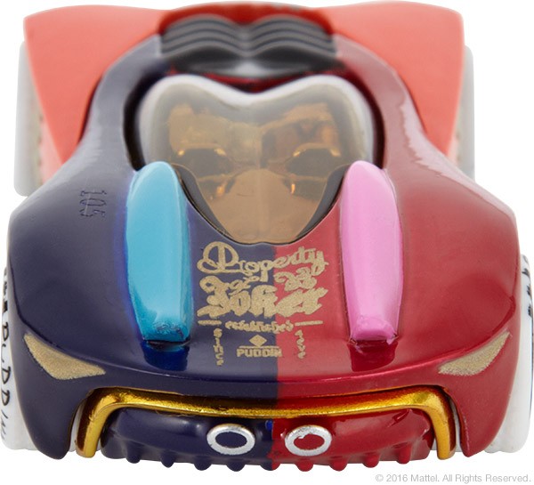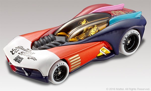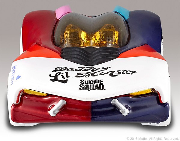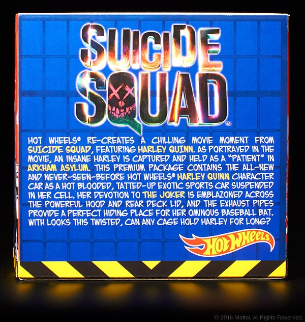 She’s everyone’s favorite psychotic villain. When Harley Quinn joins the Suicide Squad, you learn to expect the unexpected. Celebrate the Suicide Squad film with this first edition Hot Wheels Harley Quinn character car featuring a full die-cast body and chassis and Real Riders® wheels. Housed in a special package that suspends the captured car in an Arkham Asylum cell, it sports tattoos that read “Daddy’s Lil Monster” and “Property of Joker” – and you know that can’t be good.