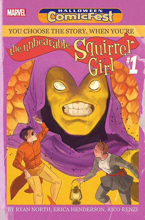 During HCF, adults and children alike can go to local participating comic shops to receive free Halloween and horror-theme comics and mini-comics published specifically for Halloween ComicFest. This year, there are 32 titles—19 full-sized comics and 13 mini-comics—available, including select titles from Marvel Comics (Darth Vader: Doctor Aphra #1, Spidey #1, Unbeatable Squirrel Girl: You Choose the Story #1, and The Haunted Mansion #1), DC Comics (DC Superhero Girls #1 and Scooby Apocalypse/Hanna-Barbera Sampler), Dark Horse Comics (Harrow County #1), and IDW Publishing (My Little Pony: The Haunted Dungeon) among other spooktacular tales.
