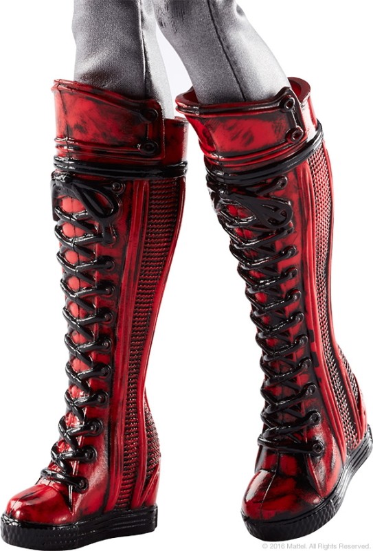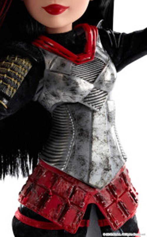 Besides her prowess in combat, Katana is also known at Super Hero High for her sense of fashion. She’s a designer and stylist and always on top of the latest trends. She’s not afraid to experiment with new looks and managed to come up with a functional, but snazzy approach to her super hero costume. Crazy Quilt likely gave Katana top grades for her supersuit design. All the details of her thoughtful samurai-inspired ensemble are reflected in the action doll. The collectible has red-streaked hair, red boots with lace accents, metallic gray leggings, armor with leather-like accents and an arm shield for her non-weapon hand.
