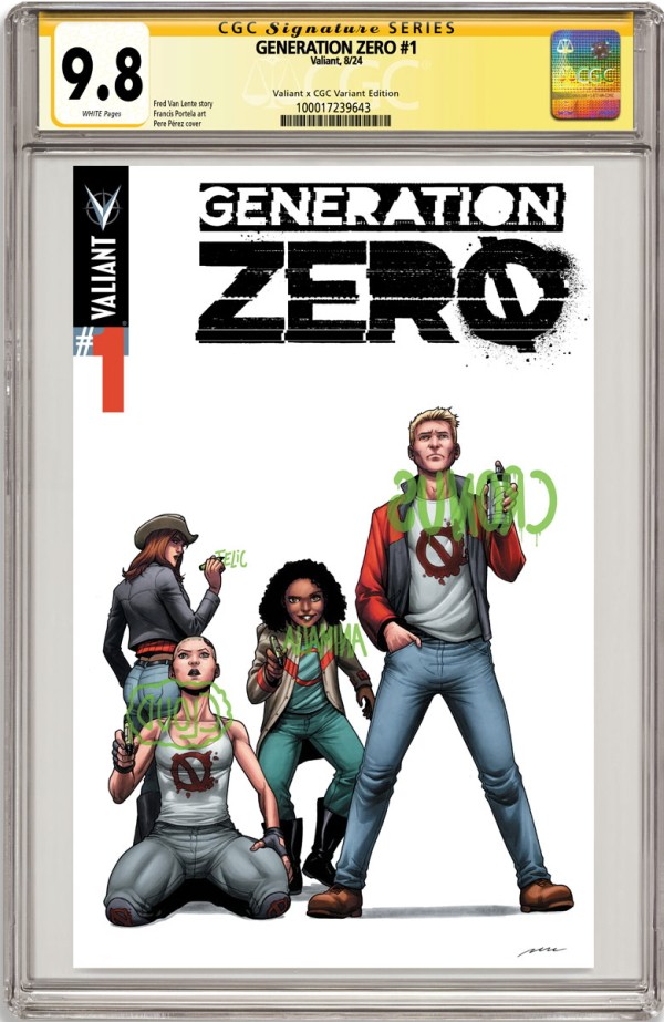 On August 24th, Fred Van Lente and Francis Portela bring “THE FUTURE OF VALIANT” careening towards a dangerous new turning point in GENERATION ZERO #1 – featuring covers by Stephen Mooney (Half-Past Danger), Tom Muller (DIVINITY), Pere Perez (FAITH), Andres Guinaldo (Justice League Dark), Kano (Swamp Thing), and Clayton Henry (HARBINGER WARS)!