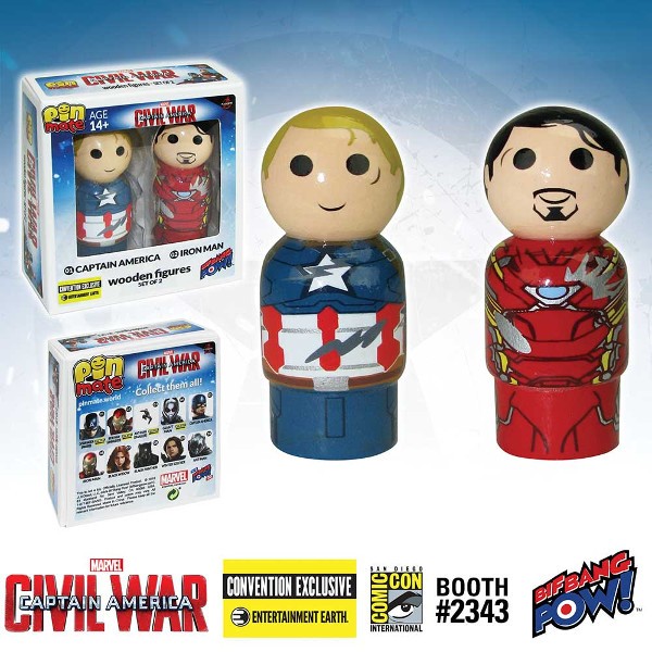 Two different philosophies from two very different Super Heroes. Who will you follow into battle? Well, lucky for you with the Captain America: Civil War Captain America vs. Iron Man Pin Mate Wooden Figure Set of 2 – Convention Exclusive from Bif Bang Pow! you don’t have to choose.