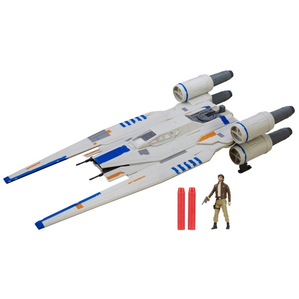 Fly into battle with the 3.75-inch scale REBEL U-WING FIGHTER and its heroic pilot CAPTAIN CASSIAN ANDOR! This Rebel starship features NERF dart firing cannons and adjustable wings to switch between flight and battle action modes. Includes vehicle, figure, and 2 NERF darts. Available at most major retailers and on HasbroToyShop.com.