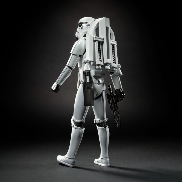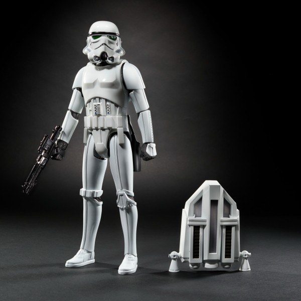 Experience The Galaxy’s most iconic soldier like never before with the 12-inch InteracTech Imperial Stormtrooper figure that responds to how you play! With more than 65 light and sound effects and accelerometer, this stormtrooper is ready for almost anything. March him into battle and listen as the InteracTech Imperial Stormtrooper leads the charge with unique sounds and phrases. Use the stormtrooper’s battle accessories to switch between blasting and flight mode. Get up close and personal with hand-to-hand combat sounds, or blast at the Rebels with a flick of the wrist. Or strap on the jetpack to unlock a library of sounds. And if the Rebels get the better of him, the InteracTech Imperial Stormtrooper yells out in defeat when falling! With these features and more, the InteracTech Imperial Stormtrooper surprises and brings your STAR WARS stories to life like never before. Includes 12-inch InteracTech Imperial Stormtrooper figure, jetpack, and blaster. Features more than 65 light and sound effects. Requires 2 AA batteries, included. Available at most major retailers and on HasbroToyShop.com.