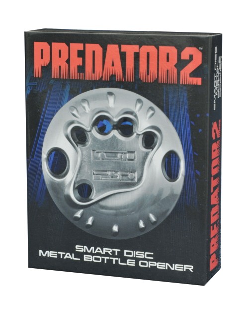 A Diamond Select Toys release! First seen in the sequel film Predator 2, the glaive weapon has become an iconic part of the Predator’s arsenal. Molded to a Predator’s grip and able to be thrown great distances, the glaive can cut through almost anything – and now it can open your bottles for you! This approximately 3-inch diameter bottle opener is modeled after the glaive as it appeared on screen, made of solid metal, and has magnets on the back so it can stick to your refrigerator or trophy case until you need it. Packaged in a collector case with a full-color sleeve. (Item #MAY162394, SRP: $18.00)