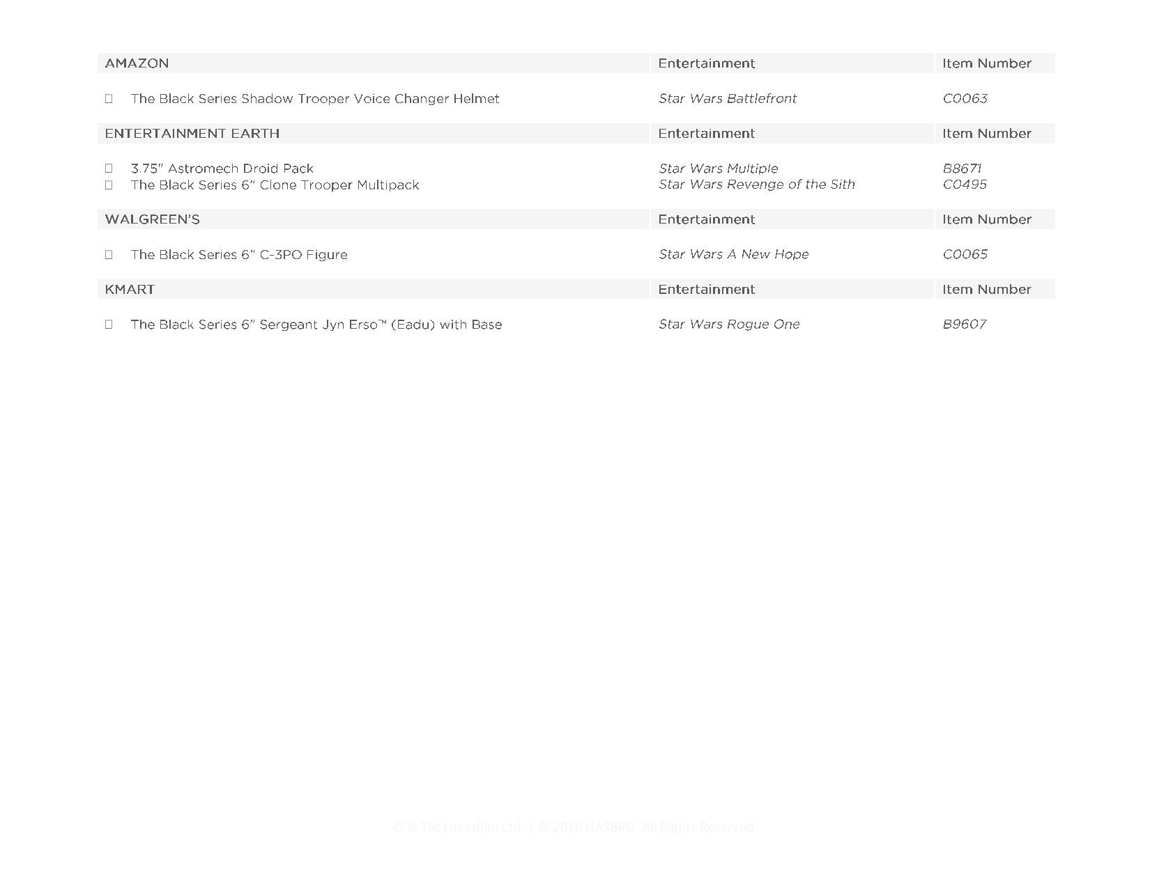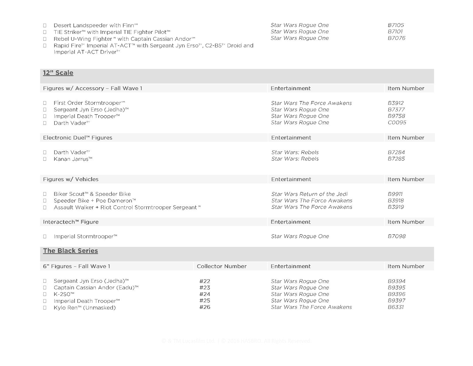 Now that the first wave of Hasbro Star Wars figures have hit shelves, Hasbro is thrilled to share with you a complete list of items you can add to your collection!
