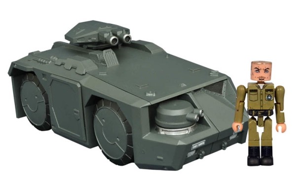 A Diamond Select Toys release! Get your Colonial Marines ready to roll out with this all-new Minimates-scale mini-vehicle of the Armored Personnel Carrier from Aliens! Based on the classic 1986 movie, this approximately 7” APC vehicle seats five Marines, and includes an exclusive Minimates mini-figure of Lt. Gorman, with an alternate bandaged head. The APC has a roof that opens up so you can control the bug hunt from the command center, plus a real sliding door, rolling wheels, moving cannon and a rack for assault rifles in the back! Packaged on a full-color blister card. (Item #MAY162381, SRP: $29.99)