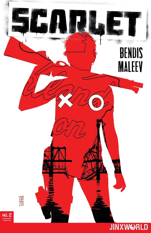 Scarlet is another title from Brian Michael Bendis’s new DC imprint, Jinxworld. Bendis is the co-creator and writer, along with co-creator Alex Maleev on illustration and colour. It’s a strongly rendered look at the dystopian future, even more strongly realistic due to the model named “Iva”, credited as being the source for drawings of Scarlet.