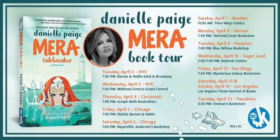WHAT:            DC’s eagerly awaited young adult publishing line, DC Ink, launches on April 2 with the release of MERA: TIDEBREAKER by New York Times bestselling author Danielle Paige (Dorothy Must Die) and art by Stephen Byrne (Green Arrow). Engaging fans across the country for a national book tour, Paige will participate in a series of intimate and honest conversations with a selection of acclaimed young adult authors to discuss her first graphic novel and how she re-imagined one of DC’s most iconic characters as an empowering and fierce teenage heroine.