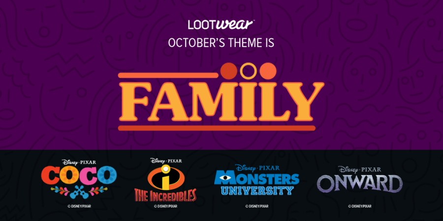 Suit up for your next big adventure in pop culture apparel as we celebrate Pixar Animation Studios with October’s exciting Family-themed line of Loot Wear!