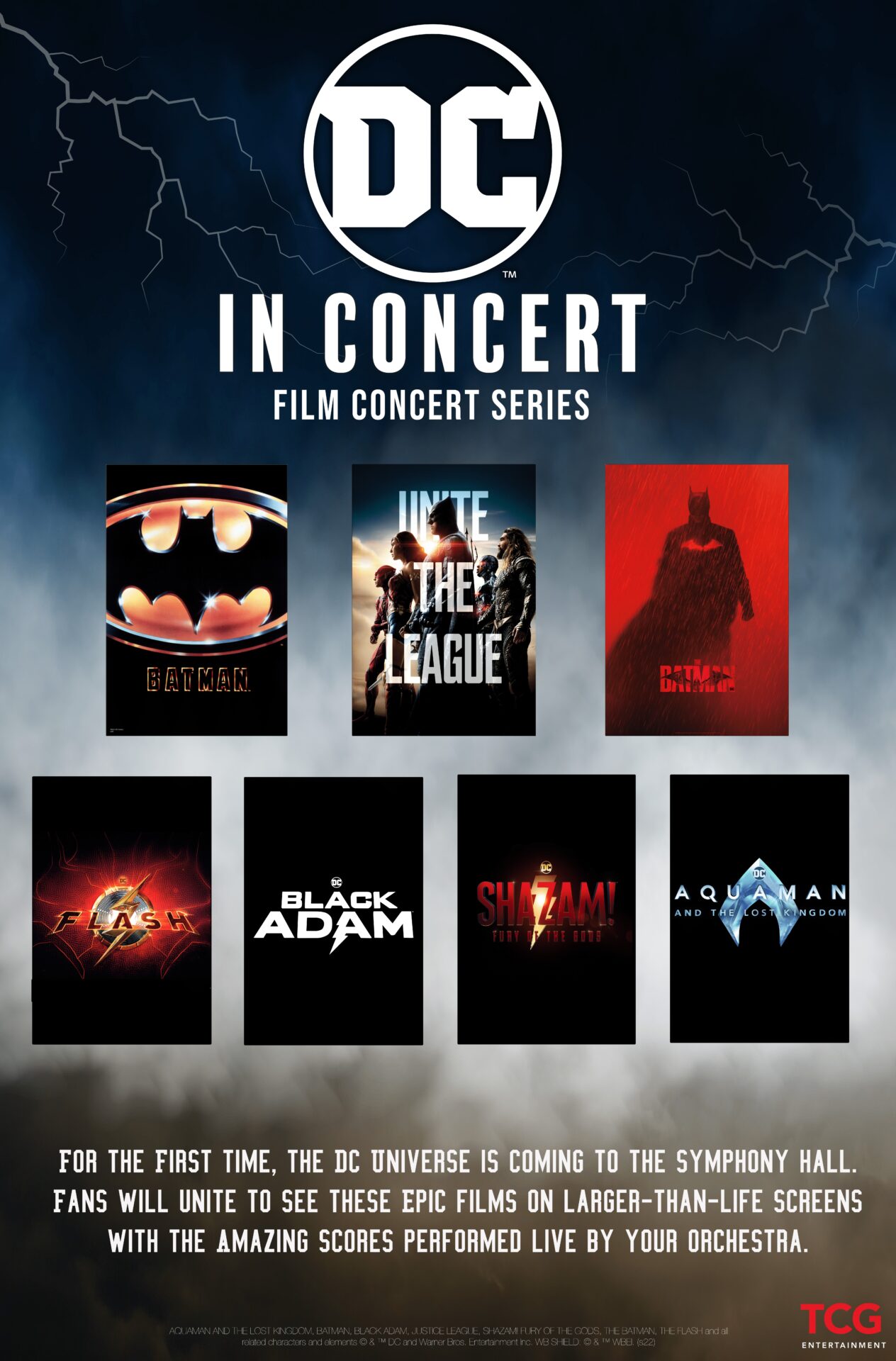 “DC in Concert” is a fan experience not to be missed with a series lineup to include “Batman” (1989), “Justice League” (2017), the most recent blockbuster and box office hit, “The Batman” (2022), as well as future DC films including “Black Adam,” “Shazam! Fury of the Gods,” “Aquaman and the Lost Kingdom,” and “The Flash.”
