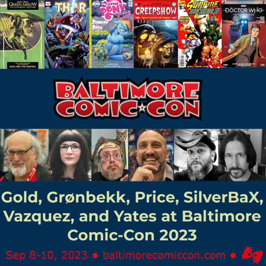 You won’t want to miss the Baltimore Comic-Co, coming up September 8-10, 2023 at the Baltimore Convention Center in Baltimore’s Inner Harbor. The Baltimore Comic-Con is pleased to announce the appearance of comic guests Mike Gold, Torunn Grønbekk, Andy Price, Bryan SilverBaX, Gustavo Vazquez, and Kelly Yates in 2023. Tickets can be bought online now on our website.