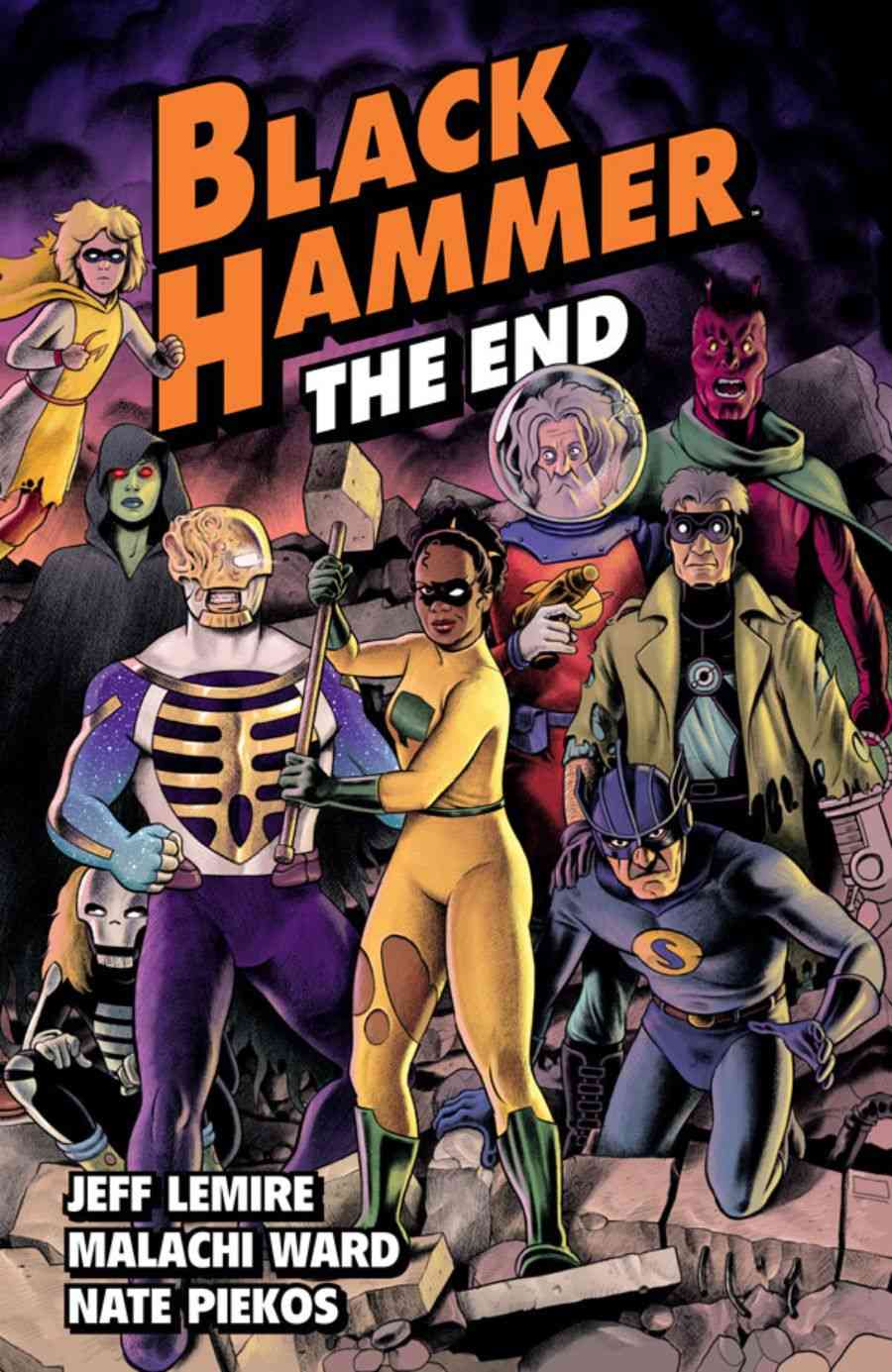 The Black Hammer crew is back in Black Hammer Volume 8: The End! This trade-paperback volume collects Black Hammer: The End #1-6 and features a sketchbook section and bonus art by Tonci Zonjic, Tyler Crook, Caitlin Yarsky, David Rubin, Max Fiumara, and Wilfredo Torres. The latest chapter of the Black Hammer saga is written by Jeff Lemire with art, colors, and cover art by Malachi Ward, and letters by Nate Piekos.