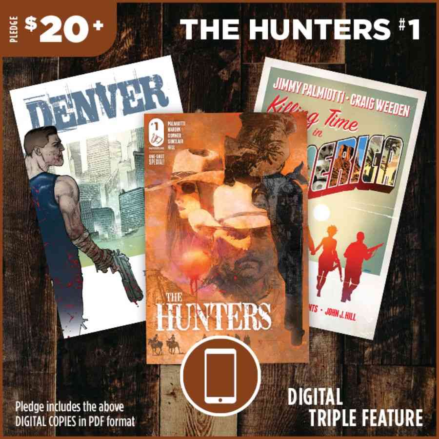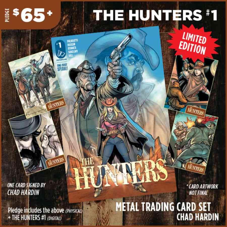 The PaperFilms team of AMANDA CONNER and JIMMY PALMIOTTI have partnered with our prior collaborator on the hit Harley Quinn series artist of Chad Hardin and Alex Sinclair on art to provide the visuals and always our skillful John J. Hill on lettering and design for the next, upcoming Kickstarter: THE HUNTERS