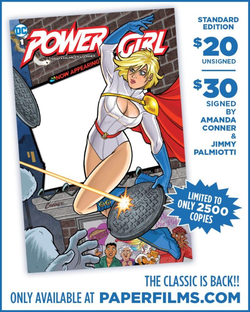Just a reminder folks, we partnered with DC Comics to do an exclusive Power Girl printing of our hit run for Power Girl #1 with a brand new, exclusive wraparound sketch cover by AMANDA CONNER. This comic printing is available only from our website, no other location. We’ve got signed and unsigned versions available. These are perfect for your collection!