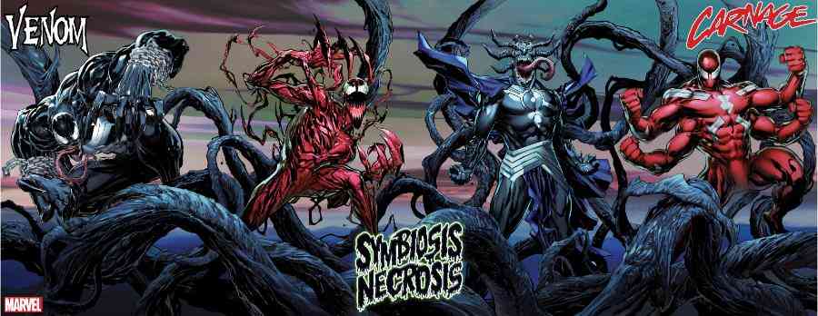The family that stays together gets slayed together! Starting next month, enjoy a symbiote bloodbath for the ages as Marvel’s two ongoing symbiote titles, VENOM and CARNAGE, play host to a vicious new saga, “Symbiosis Necrosis.” The four-part crossover will unfold across VENOM #31-32 and CARNAGE #5-6.