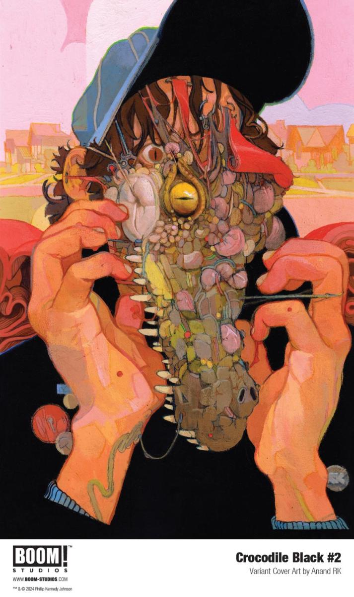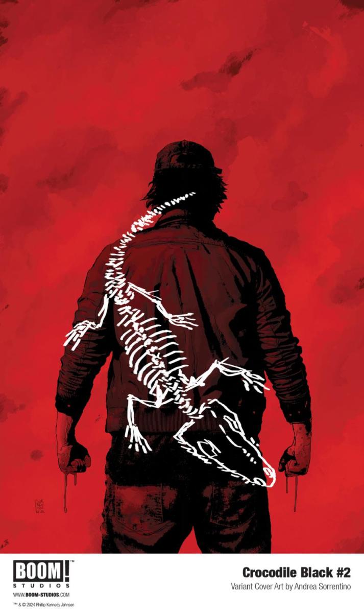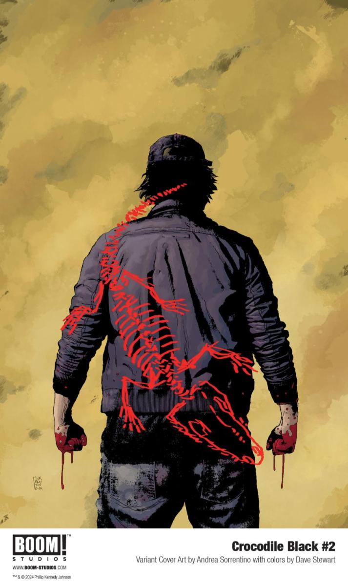 CROCODILE BLACK #2 features a main and variant cover art by Andrea Sorrentino (Gideon Falls) and a variant cover by Anand RK (Rare Flavors).