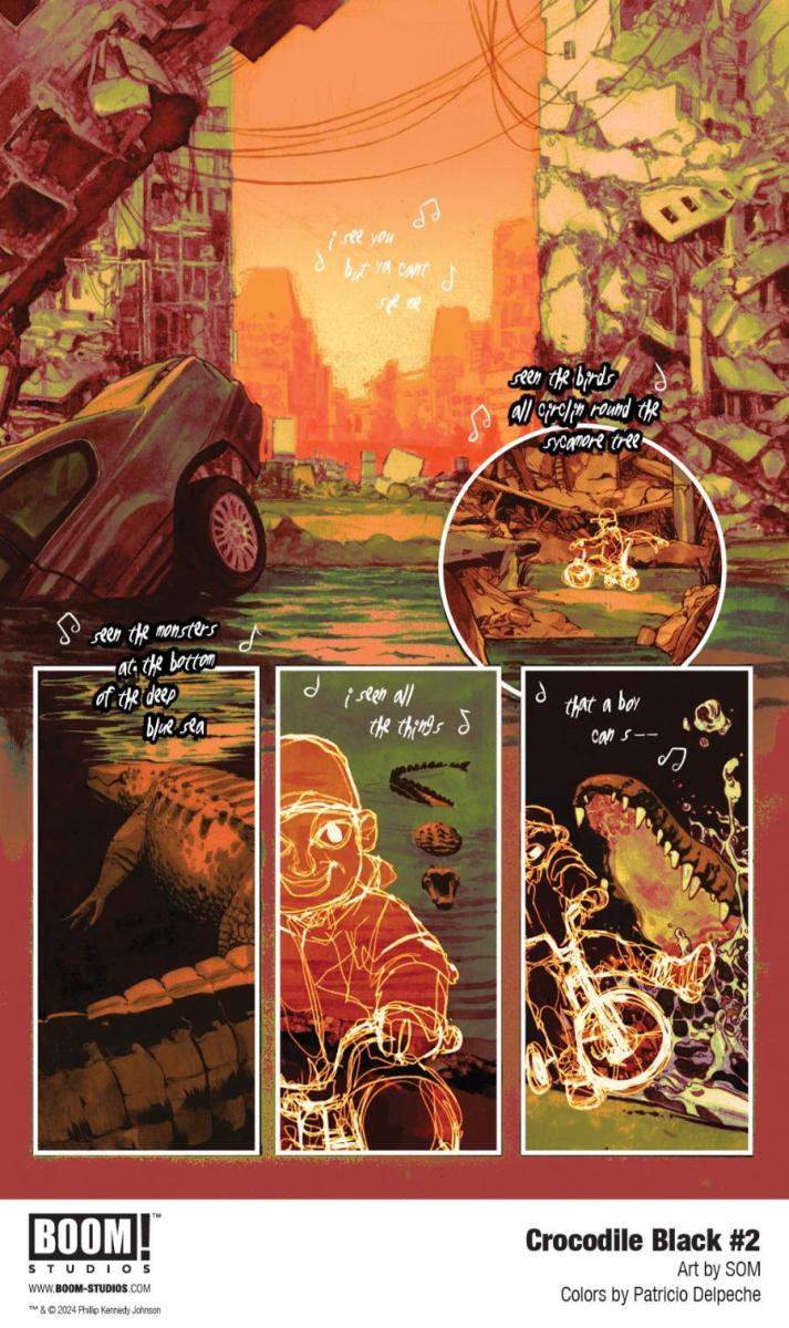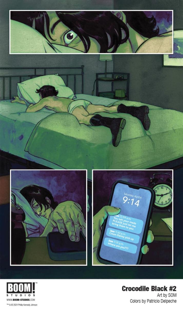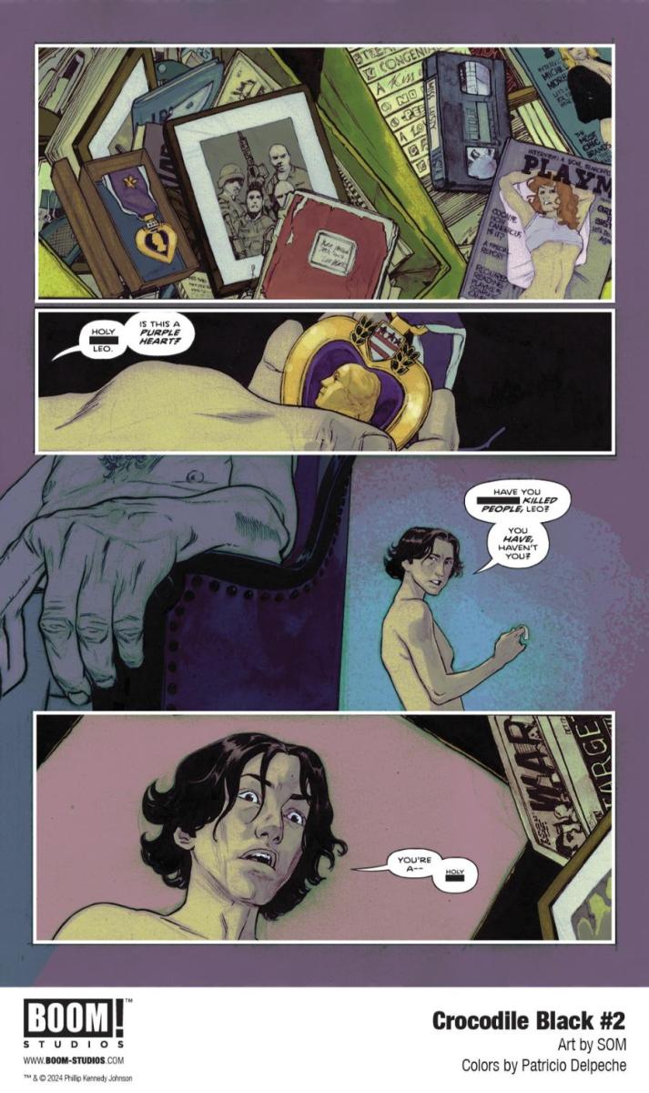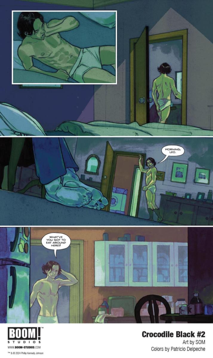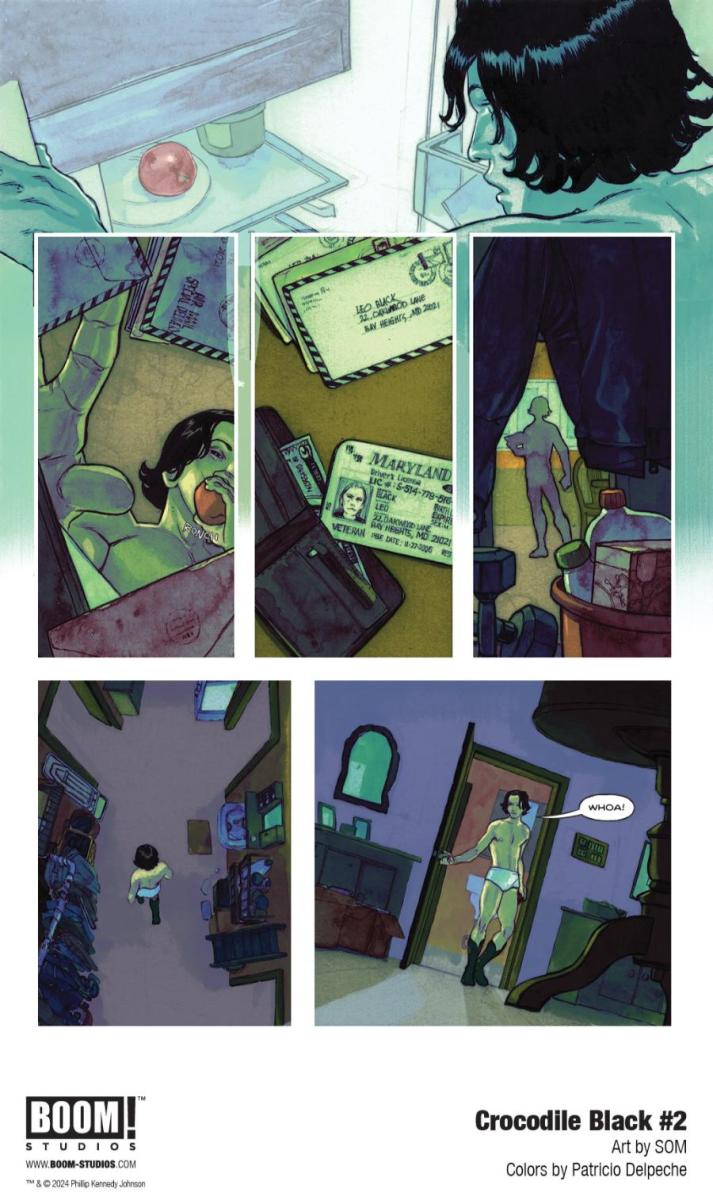 BOOM! Studios today revealed a first look at CROCODILE BLACK #2, the next issue in the brand new series by Eisner-nominated writer Phillip Kennedy Johnson (Incredible Hulk), rising star artist SOM (Brigands), colorist Patricio Delpeche, and letterer Becca Carey. Discover the iconic new noir lead in the macabre new thriller CROCODILE BLACK in June 2024.