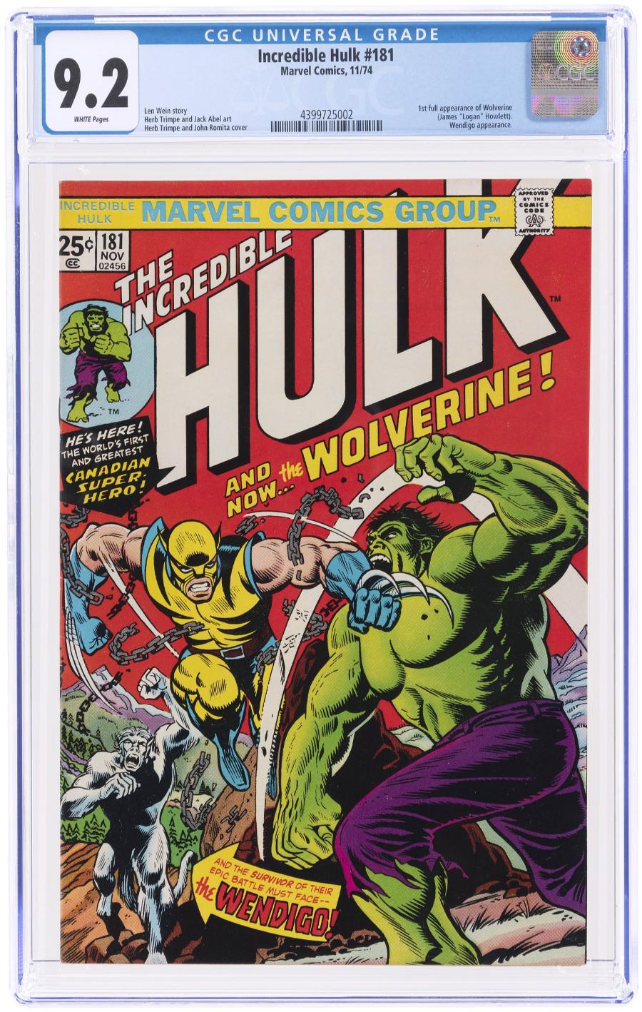 INCREDIBLE HULK #181 NOVEMBER 1974 CGC 9.2 NM- (FIRST WOLVERINE). (hakes.com)