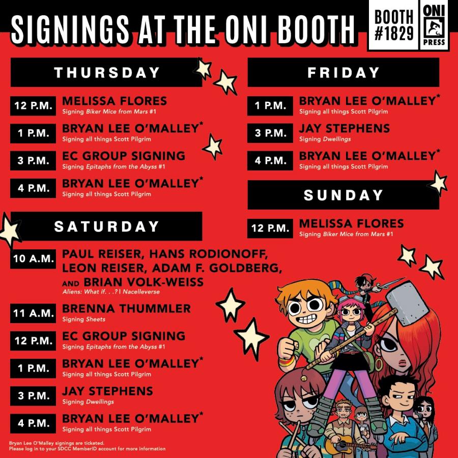 Be sure to come to Oni’s Booth (Booth #1829) for the Signings on Thursday, Friday, and Saturday! Keep your eyes on Oni’s Social Accounts for a special surprise signing on Wednesday night!