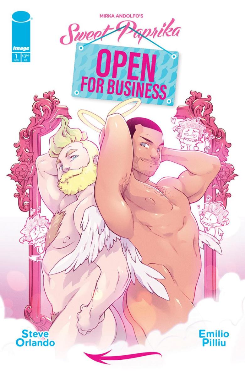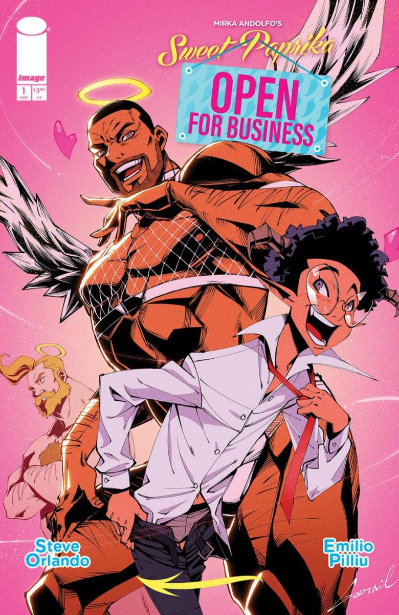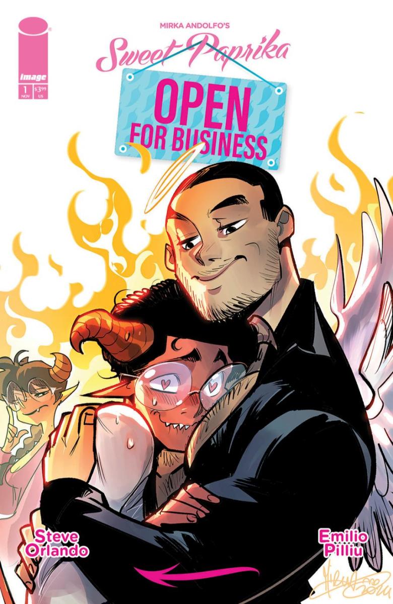 Fan-favorite writer Steve Orlando (Scarlet Witch, Marauders, Commanders in Crisis) will team up with the amazing Italian artist Emilio Pilliu (X-Men: The Wedding Special) for an erotic romance in the style of Mirka Andolfo’s original, Harvey Award winning Sweet Paprika series—and building off characters introduced in the Eisner Award nominated Sweet Paprika: Black, White & Pink #1—in the upcoming, Sweet Paprika: Open For Business. This five-issue, Queer, love-drama miniseries is set to launch in November from Image Comics and Arancia Studio.