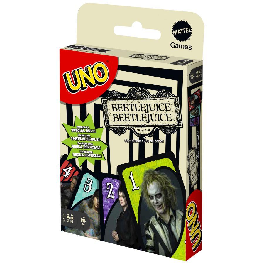 Toys, Games & Collectibles: The haunting isn’t over! The new Funko collection—paying homage to “Beetlejuice Beetlejuice”—is a must-have, featuring iconic characters brought to life in Funko’s signature style with new Pop! figures inspired by Beetlejuice, Lydia Deetz, Astrid, Bob and Delores, available for pre-sale. McFarlane Toys, renowned for its detailed collectibles, will present new limited-edition six-inch scaled posed figures this holiday season, capturing the spirit of fan-favorite characters from “Beetlejuice Beetlejuice.” Prepare for mayhem this fall with NECA‘s new collectibles—including prop replicas, figurines, and more—capturing every spooky detail from the shapeshifting antics of Beetlejuice himself to the haunting presence of Lydia and the mysterious Astrid, which will keep fans DEADLY entertained. The fun doesn’t stop there with an all-new “Beetlejuice Beetlejuice” themed UNO card game, where players try to match colors and numbers—there’s even a special “Beetlejuice Beetlejuice Beetlejuice” rule to bewitch other players into taking cards, available at Walmart starting 8/17 in-store and online. And unleash your inner mischief with premium playing cards by theory11, offering a blend of elegance and eerie charm, perfectly encapsulating the spirit of Beetlejuice, available this September.