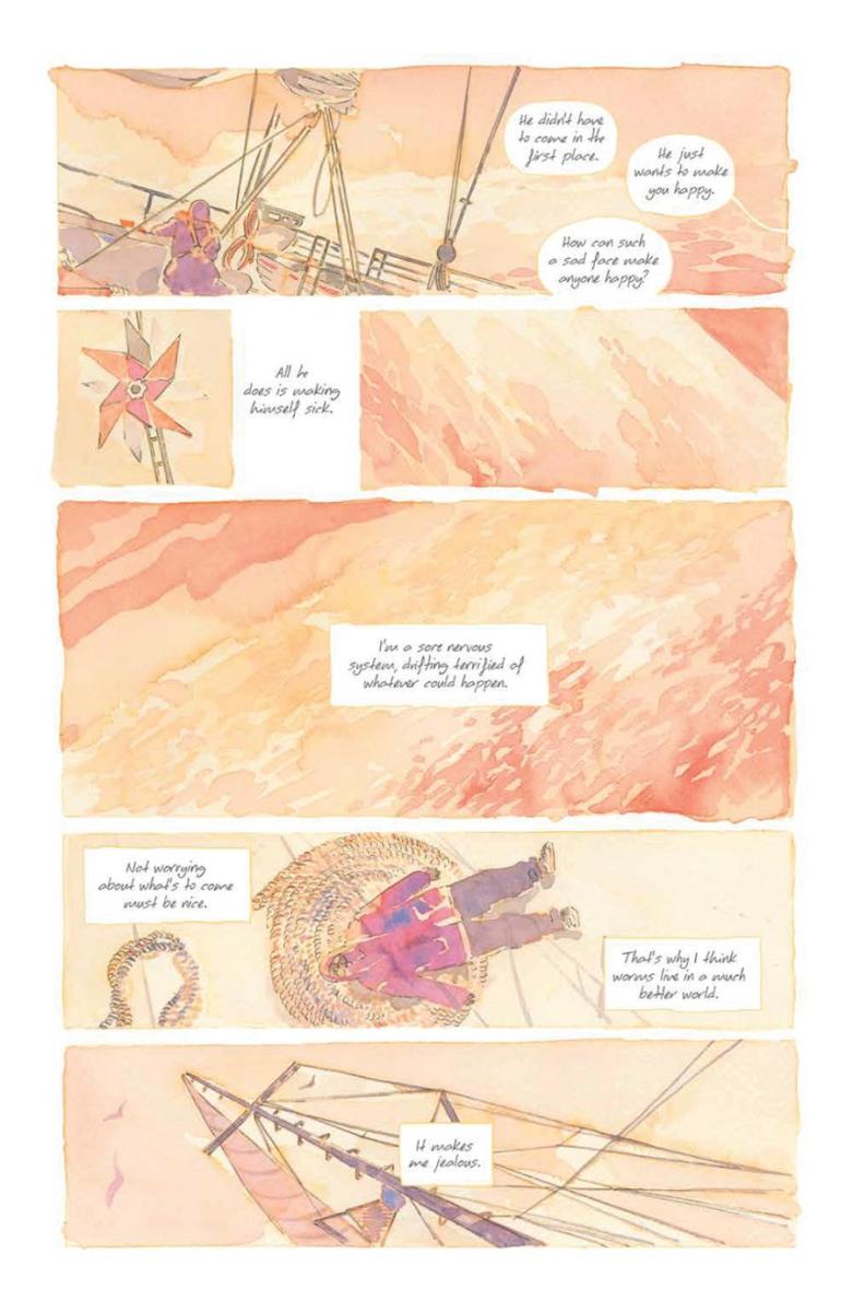 “Anzuelo beckons us on a walkabout and asks us to listen to the sea and know Earth’s creatures as our collaborators in what is to come. You are in good hands with master storyteller Emma Ríos. It’s a beautiful ride. A must-have graphic novel.” —Ann Nocenti, Daredevil, Longshot