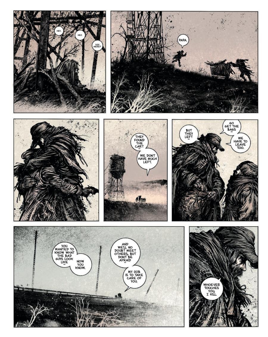 I usually write my own comics, one of which (Blast) shares common themes with your book. But I didn’t write The Road; I really wish I had! I sincerely thank you for allowing me to put my pencil down where your pen went.