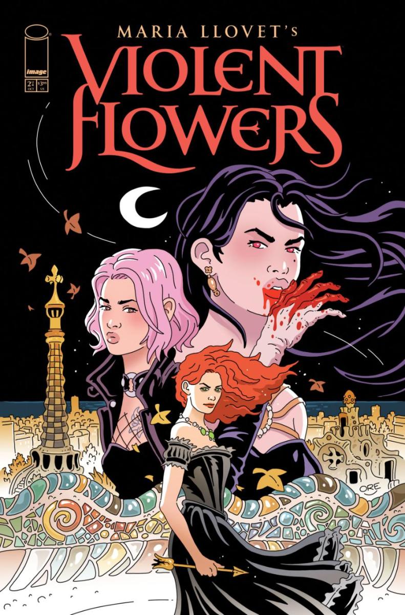 An early look at issues #2 and #3 of cartoonist Maria Llovet’s new Image Comics vampire miniseries Violent Flowers reveals thrilling storytelling and gorgeously lush artwork with action-packed scenes from the erotic fantasy-horror comics. In Violent Flowers, Llovet—known for creating the fan-favorite Crave series—lures readers into a dark and sensual world full of vampires and other supernatural beings seeking revenge amidst the fashionable backdrop of a haunted Barcelona. The four-issue miniseries, which explores classic myth with a modern twist, continues with issue #2 debuting on October 30, just in time for Halloween.