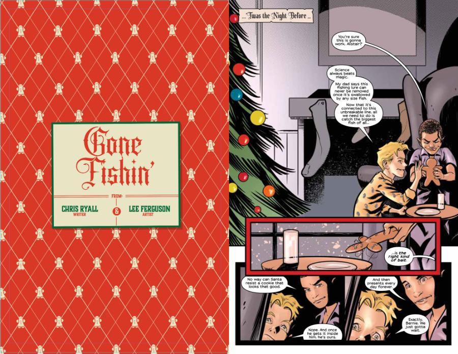 From Image Comics and Syzygy Publishing, co-created and written by Jordan Hart (Ripple Effects, The Cabinet) and Chris Ryall (Zombies vs. Robots), comes Dread The Halls—an extra-length one-shot collection of four not-so-merry tales of terror featuring mesmerizing interior art by Lee Ferguson (“Gone Fishing”), Jimmy Kucaj (“Krampus Hunters”), Walter Pax (“Northerners”), and Fabio Veras (“Dead Notes”)—perfect for ‘curdling’ up next to a burning Yule log.