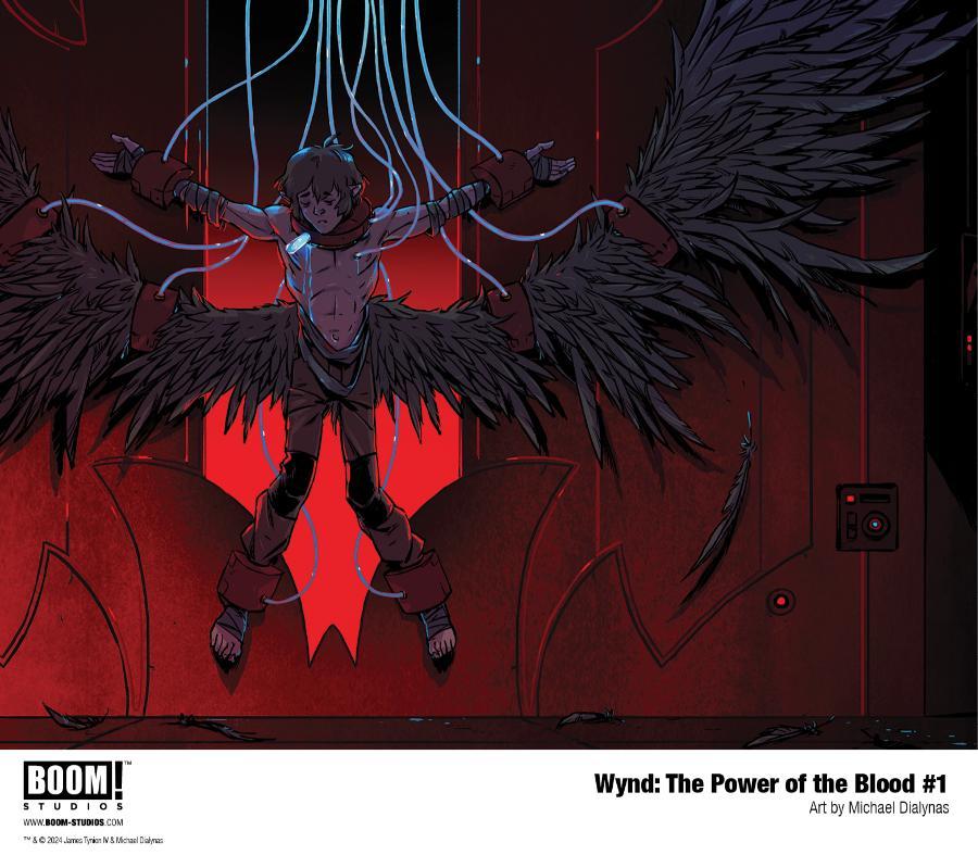 WYND: THE POWER OF THE BLOOD is the newest release from BOOM! Studios’ eponymous imprint, home to critically acclaimed original series, including BRZRKR by Keanu Reeves, Matt Kindt, and Ron Garney; Something is Killing the Children by James Tynion IV and Werther Dell’Edera; Grim by Stephanie Phillips and Flaviano; Stuff of Nightmares by R.L. Stine and A.L. Kaplan; Damn Them All by Simon Spurrier and Charlie Adlard; Once Upon a Time at the End of the World by Jason Aaron, Alexandre Tefenkgi, Leila del Duca, and Nick Dragotta; A Vicious Circle by Mattson Tomlin and Lee Bermejo; Ghostlore by Cullen Bunn and Leomacs; Coda by Simon Spurrier and Matías Bergara; Rare Flavours by Ram V and Filipe Andrade; Underheist by David and Maria Lapham; Animal Pound by Tom King and Peter Gross; Minor Arcana by Jeff Lemire; and the upcoming The Creeping Below by Brian Azzarello and Vanesa Del Rey. The imprint also publishes popular licensed properties, including Dune: House Corrino from Brian Herbert, Kevin J. Anderson, and Simone Ragazzoni; Mighty Morphin Power Rangers by Melissa Flores and Simona Di Gianfelice; and The Expanse: Dragon Tooth by Andy Diggle, Rubine, and Francesco Pisa.