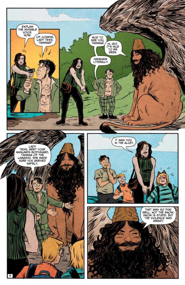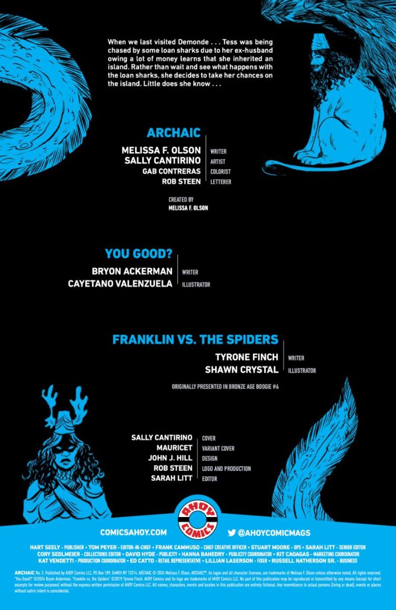 On January 8, AHOY Comics will publish ARCHAIC #2, the second issue of the modern-day action-adventure which follows the newest residents of a sentient island populated by the gods and monsters of dead civilizations: a harried single mom and her three kids. From writer Melissa F. Olson (Project: Cryptid, Dead Spots), artist Sally Cantirino (I Walk With Monsters), and colorist Gab Contreras (Witchblood), the fast-paced mystery explores what happens to legends once the world no longer has use for them. ARCHAIC #2 will feature a main cover by Cantirino, as well as a variant cover from Mauricet.