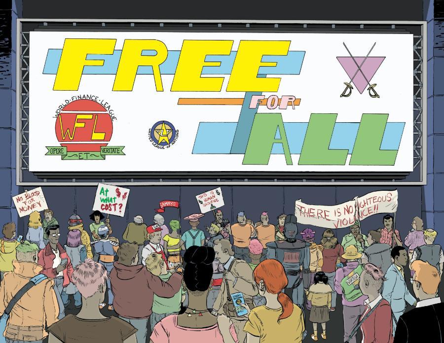 It’s every shareholder for themselves when death and bankruptcy collide in FREE FOR ALL #1 – a giant-sized spectacle of capitalism and carnage coming this March from Eisner Award-nominated cartoonist Patrick Horvath!
