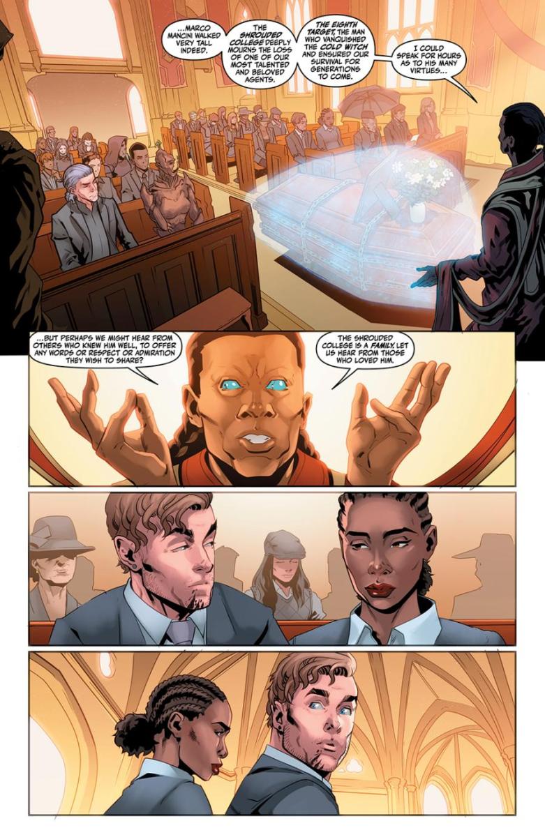 Sliney added: “Charles is really pushing me on this one with his scripts. While this book still delivers the high-stakes action and supernatural spy escapades we’ve come to expect from the Shrouded College, this time, our collaboration plunges even deeper into the shadows. The Cold Witch doesn’t just flirt with horror—it embraces it fully, dragging us into something far more chilling and unrelenting. Violet’s journey is one of pure, ice-cold revenge, and every step she takes is more ruthless than the last. There’s no turning back for her, and as I bring her story to life on the page, I find myself drawing things that send shivers down my spine. What she’s doing… and what I have to illustrate to capture it… is some of the most unsettling, eerie, and downright terrifying work I’ve ever tackled. This book isn’t just dark—it’s pitch black, and I can’t wait for readers to step into the cold with us.”