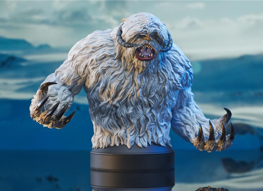 A Gentle Giant Ltd. release! Welcome to Hoth! One of Hoth’s most unfriendly – and anxiously awaited! – inhabitants is joining the 1/6 scale line of mini-busts from GG LTD! Standing approximately 7.5 inches tall, this massive bust will tower over the rest of your Star Wars characters while baring its teeth and claws. Limited to only 1,000 pieces, it features detailed sculpting and paint applications, and sits atop a black pedestal. It comes packaged in a full-color box with a numbered certificate of authenticity. SRP: $250.00
