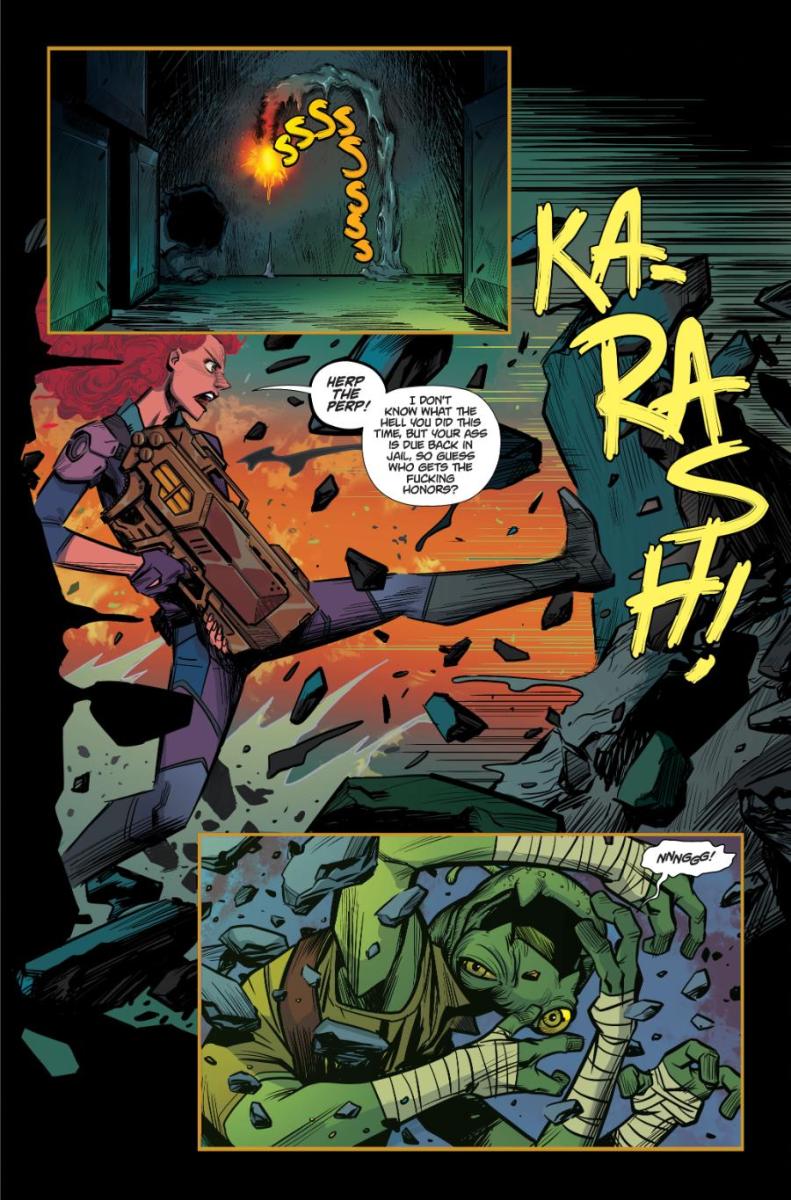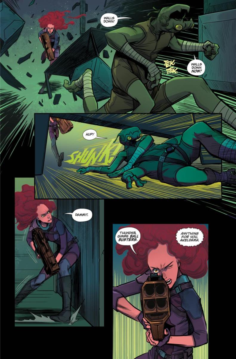 “You can immediately tell how much the creative team loves sci-fi storytelling,” said Nachie Marsham, Senior Editor at Skybound. “Blood & Thunder brings a mix of high-octane asskickery with epic scope and a deep desire to grab readers and keep them guessing. The world is big, the story is focused, and the art is a blast.”