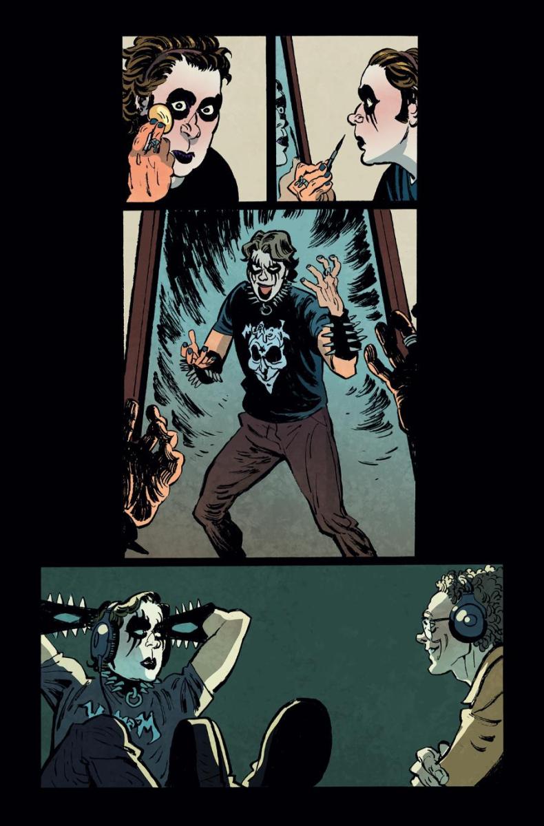 Then: Buckle up because this book is coming in like a screaming eagle to comic shops everywhere on May 13th! From the honestly pretty impressive mind of multi-hyphenate writer-comedian-actor-musician Dave Hill (Tasteful Nudes) and breakout artist Artyom Topilin (Cruel Universe, I Hate This Place) comes DARK REGARDS #1 – THE SHOCKINGLY TRUE, TERRIFYINGLY HILARIOUS, AND ONLY MODESTLY EXAGGERATED tale of how one stand-up comedian forged a secret online identity as America’s first true black metal icon . . . and accidentally started an international incident that almost wiped Gary, Indiana, off the map!