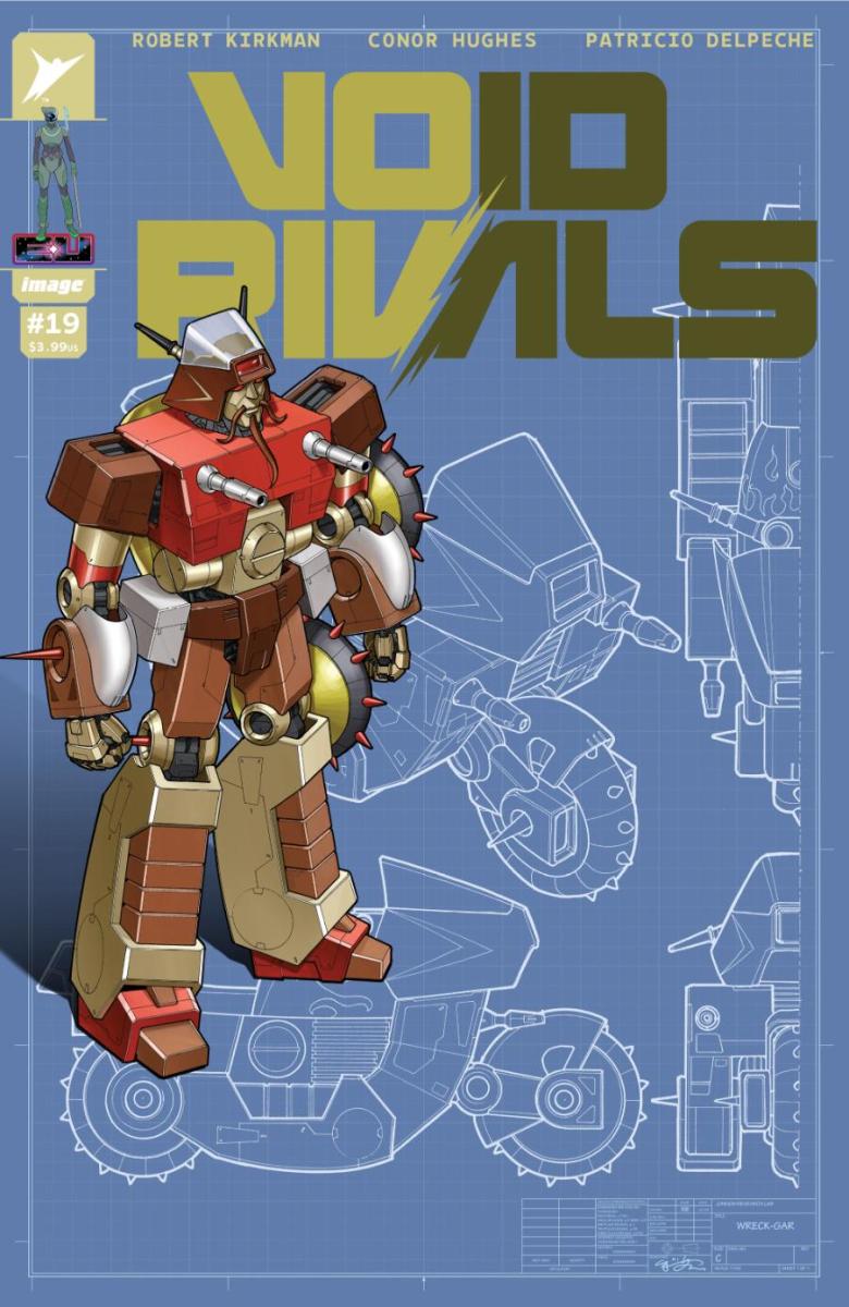 Then, jump starting the third story arc of the space opera, Void Rivals #19 serves as a standalone Skuxxoid epic. The breakout fan-favorite of the Energon Universe takes center stage. Who is Skuxxoid? What is Skuxxoid? This issue answers all of your burning questions and more! Plus, the First appearance of Wreck-Gar and the Junkions.