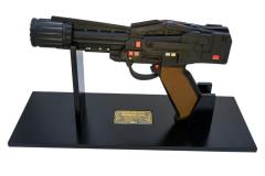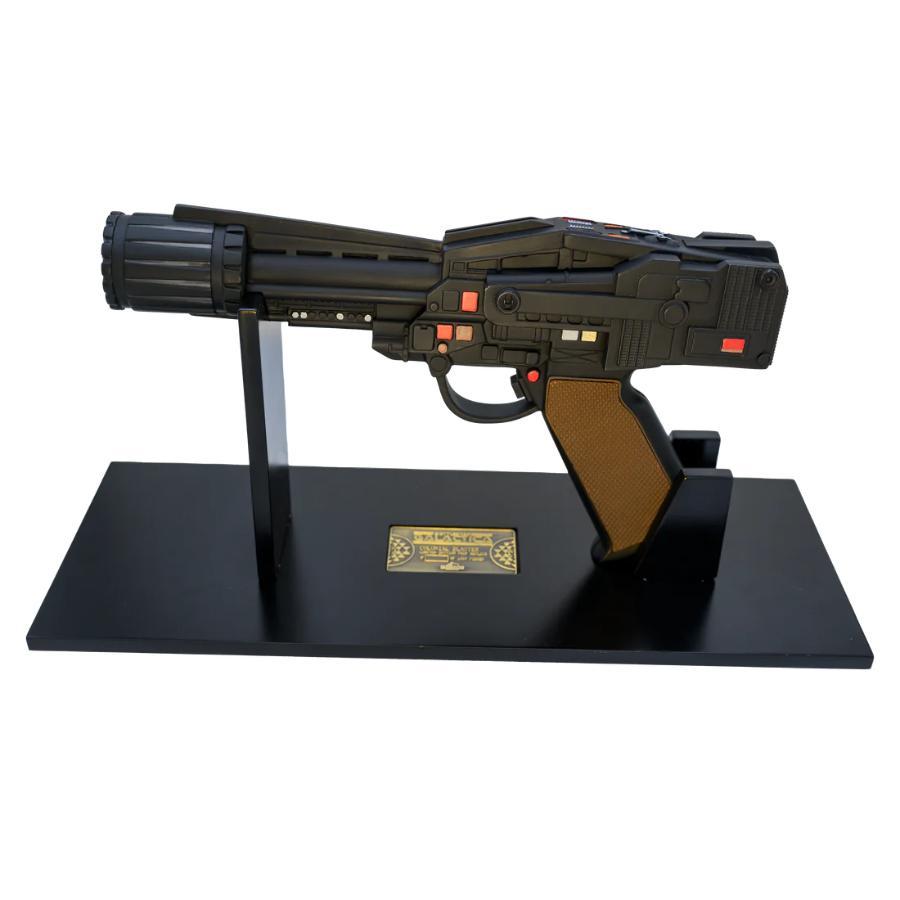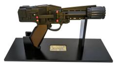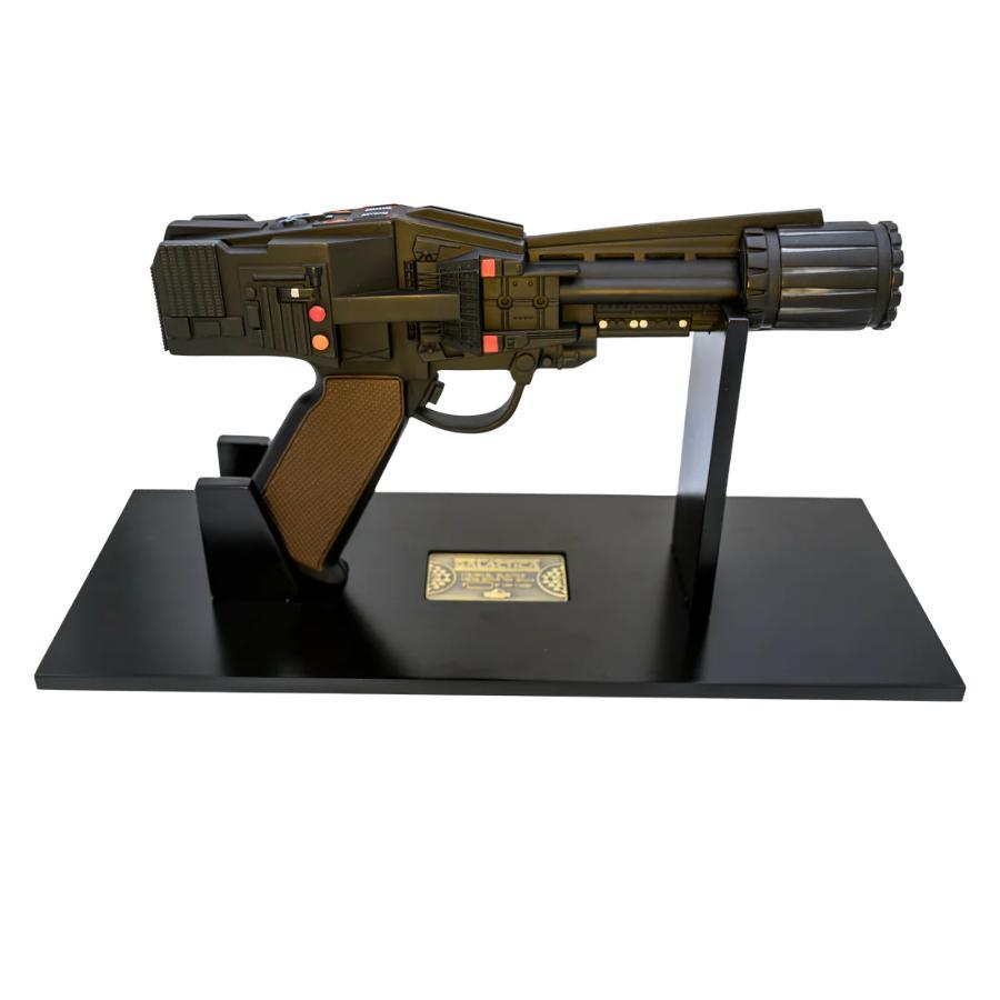 The replica features screen-accurate integrated electronic light and sound effects for added realism. The body is constructed from high-quality resin with hand-painted details, while the barrel is crafted from durable metal. Each replica comes with an individually numbered plaque, a custom display stand and a certificate of authenticity.
