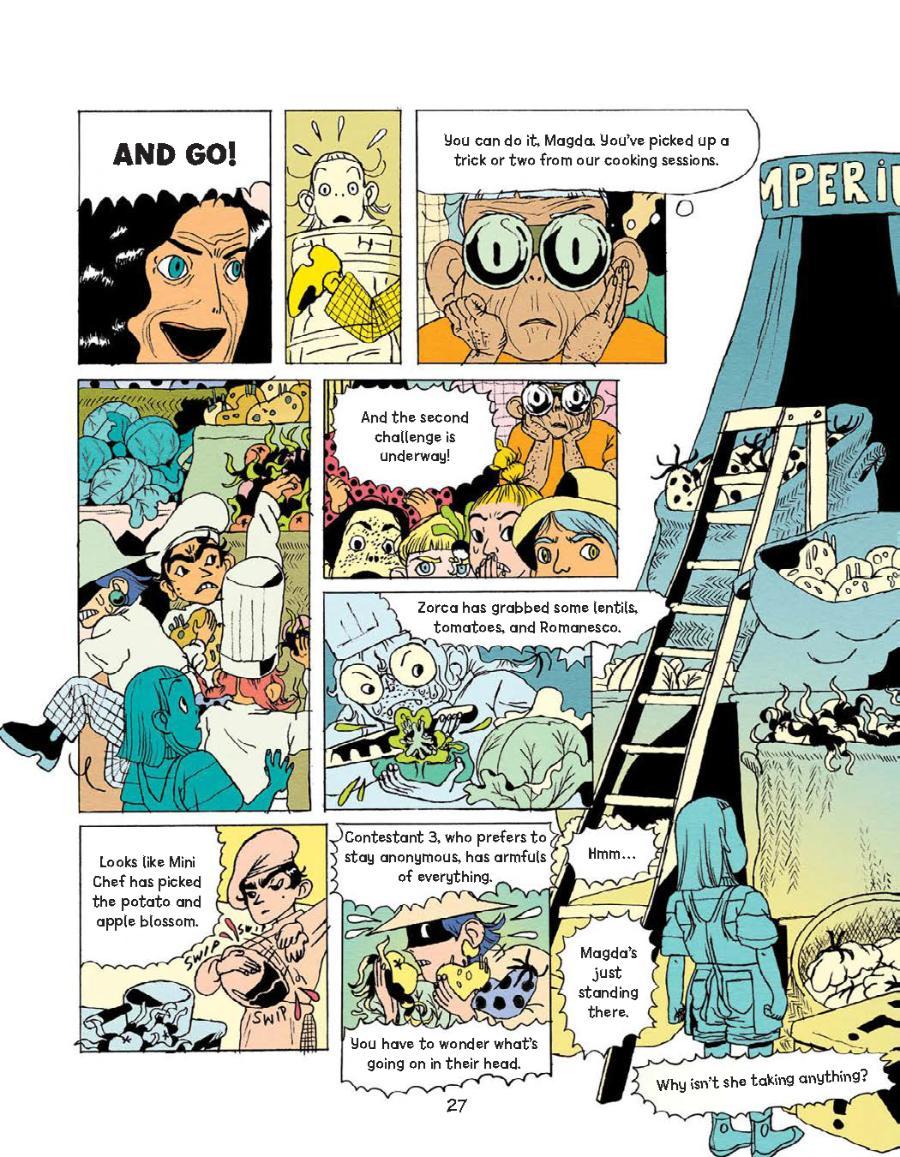 This spring, get a delicious taste of life in the cosmos with MAGDA, INTERGALACTIC CHEF: THE BIG TOURNAMENT, an action-packed and intriguing tale that’s the perfect mix of sci-fi, climate fiction, and fine dining. Perfect for readers who love comics, cooking, and food, MAGDA, INTERGALACTIC CHEF: THE BIG TOURNAMENT by writer Nicolas Wouters and artist Mathilde Van Gheluwe follows twelve-year-old Magda as she competes in a famous intergalactic cooking tournament — and discovers an interstellar conspiracy to destroy her home planet that only she can thwart. Replete with colorful and lively artwork which captures the excitement of competitive cooking, the tasty tale also features wildly creative recipes for delectable vegetarian dishes. The world-spanning tale of irresistible intergalactic intrigue will land in stores on this planet on April 1, 2025 from Graphic Universe™, an imprint of Lerner Publishing Group.