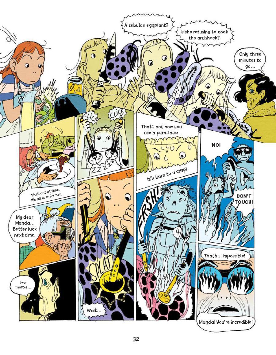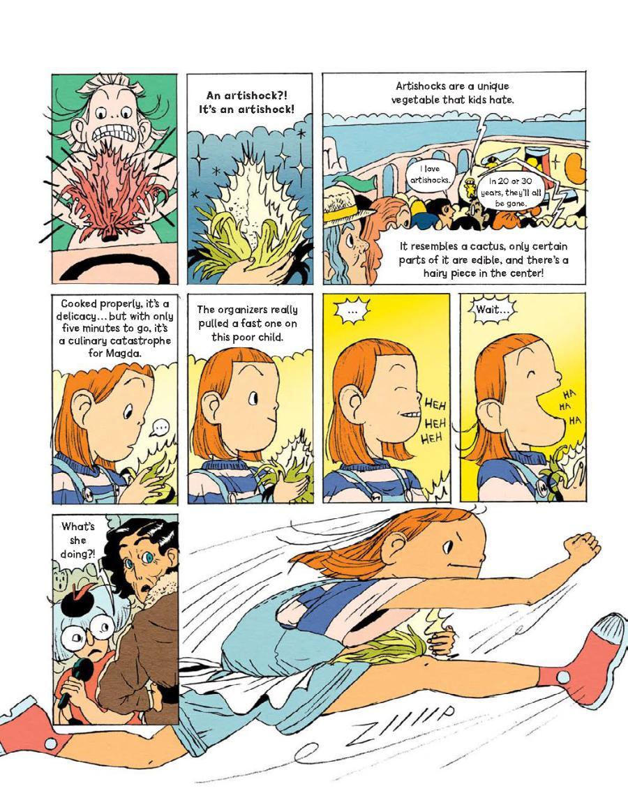 “I generally know within 15 minutes of reading a foreign comic if I want to acquire it or not — and with the MAGDA series, I was all-in after about 30 seconds,” said Lerner Editorial Director Sean Tulien. “The lively, kinetic nature of the art, the immediately appealing concept of competitive cooking meets sci-fi, the earnest portrayal of a young girl facing impossible odds — it all just works, and in a way I haven’t quite seen before. There’s nothing like this on the market: climate fiction meets Great British Baking Show meets dystopian sci-fi. Thankfully, we have 2 more volumes in the series coming!”