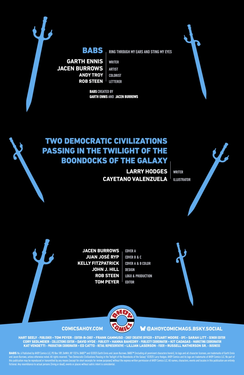 On Wednesday March 12, AHOY Comics will publish BABS #6, the sixth and final issue of the sharp satire of sword & sorcery by Garth Ennis — the award-winning writer of Hitman, The Punisher, Sara and Marjorie Finnegan, Temporal Criminal, and co-creator of The Boys and Preacher — and acclaimed artist and frequent collaborator Jacen Burrows (Crossed, The Ribbon Queen).